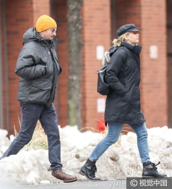 “大表姐”劳伦斯与男友一前一后结伴而行。