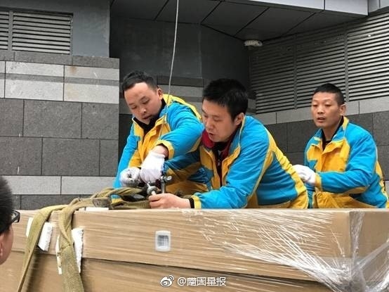 市民花50万买下超大电视 钢索悬吊入户花费2万