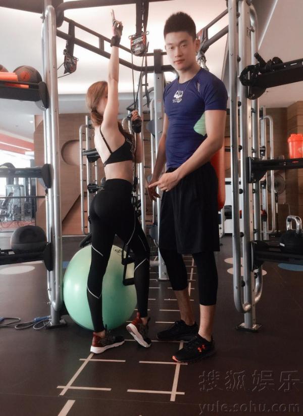 吴佳尼健身,秀好身材。