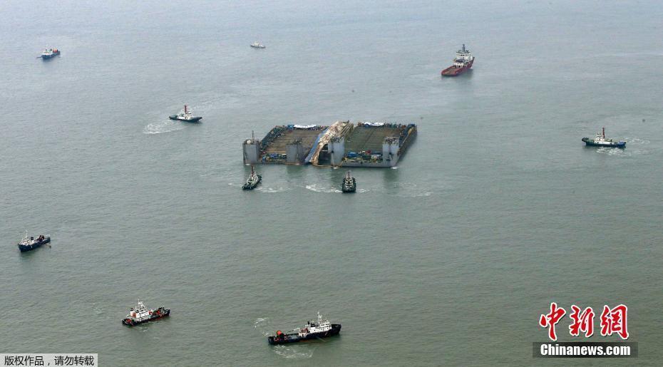 韩“世越”号打捞持续 船体尽显“沧桑”