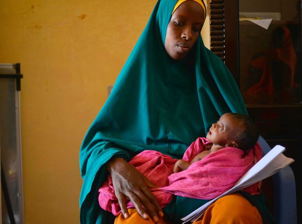 对Abdulahi这样的孩子来说,救援物资和医疗救助就是生命的礼物。英国灾害应急委员会DEC宣布已经筹集2400万英镑(约合人民币2.05亿元),以帮助东非地区饱受饥饿之苦的儿童。据报道,目前仅索马里就有620万人需要援助,其中290万人面对饥荒危机。同时,近100万名5岁以下的孩童将“严重营养不良”。图为一名“严重营养不良”的婴儿躺在妈妈怀里。