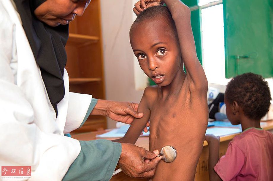 【饥饿之苦】据英国《镜报》3月20日报道,两周前,当5岁的索马里小男孩Abdulahi站上流动诊所泥泞地板上的体重秤时,指针几乎没有振动。这名大眼睛男孩瘦弱的胸膛能明显看出肋骨的形状。由于很久没有进食,Abdulahi的腹部瘪下去像个漏气的皮球。护士为他测量腕围的结果是红色“危险”,而他还患有支气管炎症。但是,经过英国援助机构医务人员的努力,Abdulahi和他的两个兄弟目前正逐渐康复。对Abdulahi这样的孩子来说,救援物资和医疗救助就是生命的礼物。英国灾害应急委员会DEC宣布已经筹集2400万英镑(约合人民币2.05亿元),以帮助东非地区饱受饥饿之苦的儿童。据报道,目前仅索马里就有620万人需要援助,其中290万人面对饥荒危机。同时,近100万名5岁以下的孩童将“严重营养不良”。