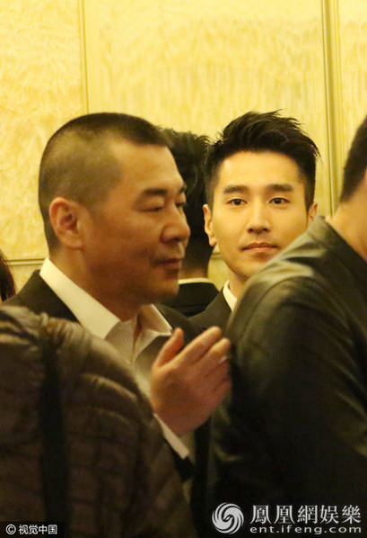赵又廷目不转睛地盯着陈建斌,脸上露出呆呆的笑容十分可爱。