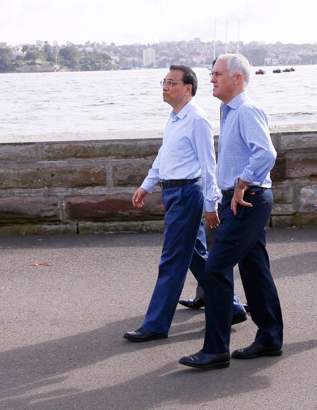 李克强与特恩布尔悉尼湾散步