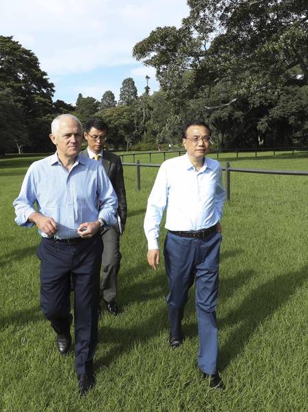 李克强与特恩布尔悉尼湾散步。