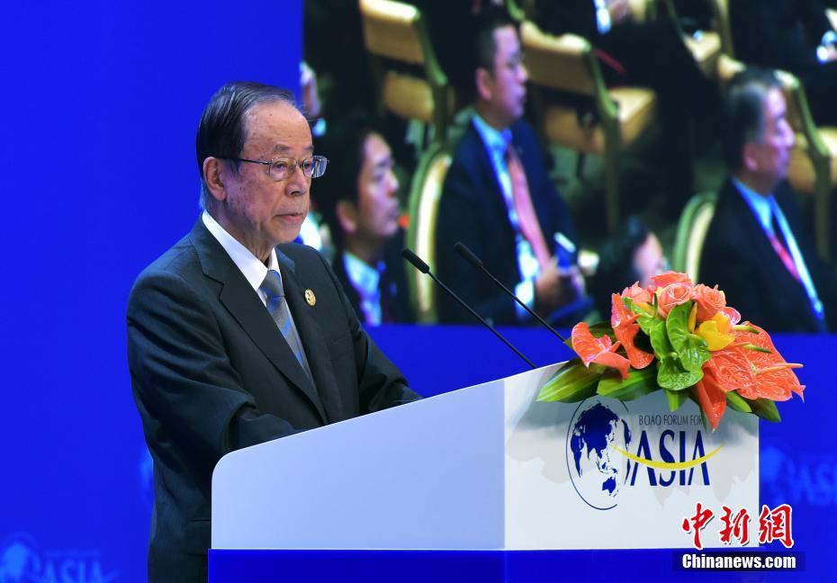 博鳌亚洲论坛理事长福田康夫致辞。 中新社记者 毛建军 摄
