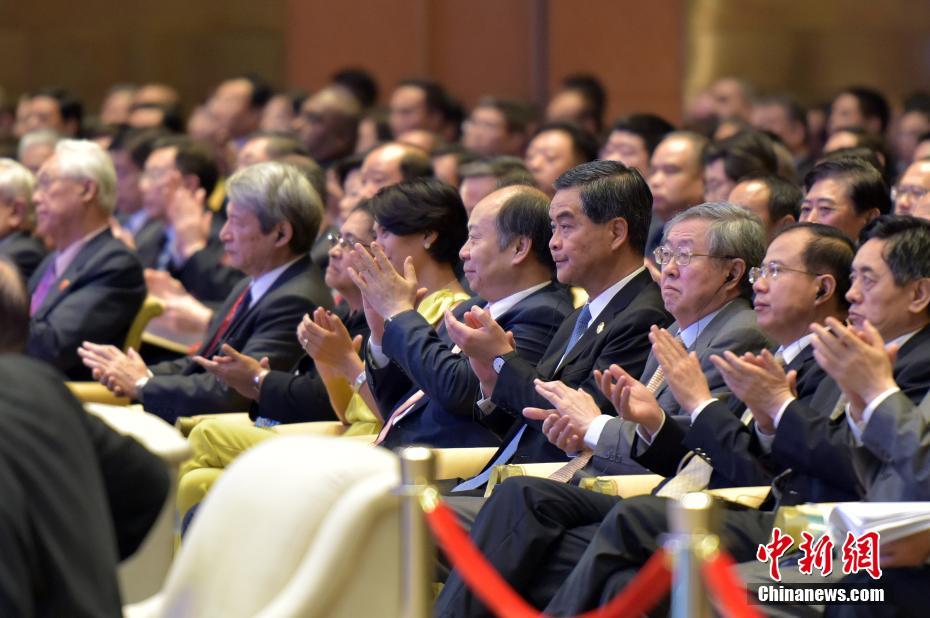 全国政协副主席、香港特别行政区行政长官梁振英,中国人民银行行长周小川等出席。 中新社记者 毛建军 摄