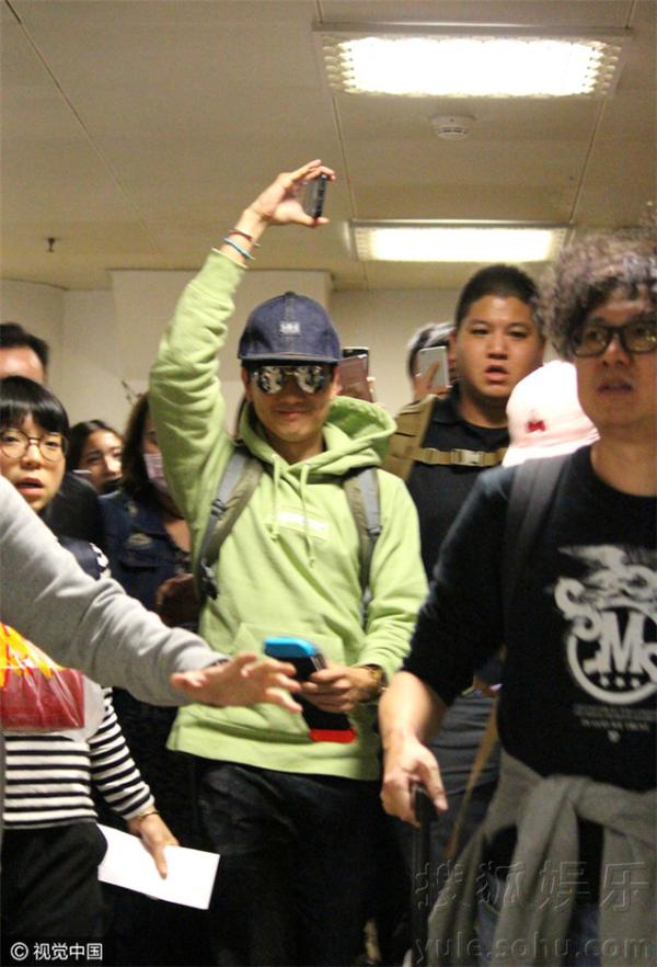 林俊杰一现身机场内粉丝便尖叫不断,JJ开心拿手机全程记录接机盛况