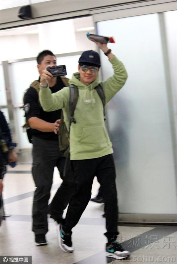 紧紧跟随的保镖和工作人员则一脸严肃,神情紧张