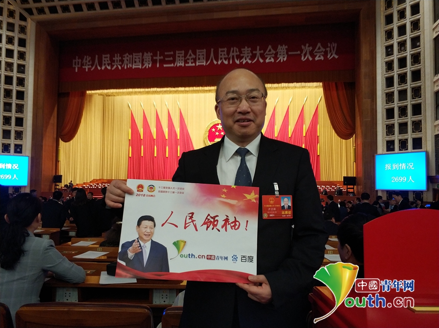 全国人大代表尹学群为人民领袖点赞。 中国青年网记者 杨月 摄