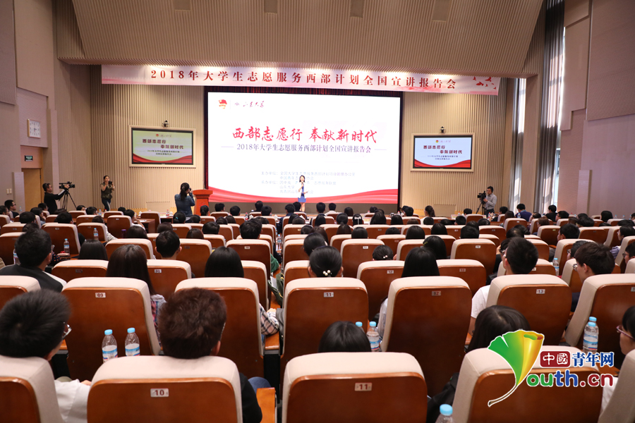 中国青年网济南4月28日电(特约记者 邢燕)4月26日下午,西部计划全国项目办、中国青年志愿者协会在山东大学举行2018年大学生志愿服务西部计划全国宣讲报告会。报告会采用网络同步直播方式,在中国青年志愿者微博、共青团中央微博、团中央学校部微博、中国青年网、未来网、团中央“青年之声”微博6个平台推送,吸引了30多万名大学生和青年朋友在线观看。