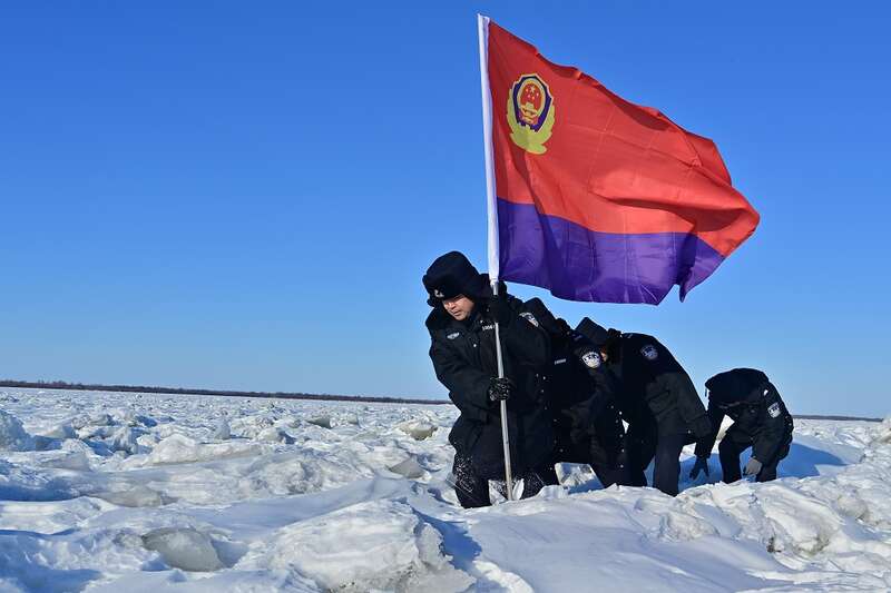 黑瞎子岛边境管理大队民警在江上巡逻。