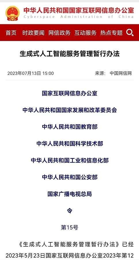 中国青年报客户端北京7月13日电(中青报·中青网记者 何春中)近日,国家网信办联合国家发展改革委、教育部、科技部、工业和信息化部、公安部、广电总局公布了《生成式人工智能服务管理暂行办法》(以下简称《办法》)。国家网信办有关负责人今天就《办法》相关问题回答了记者提问。
