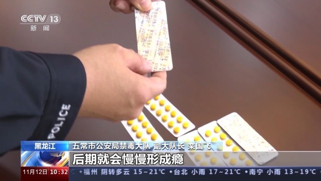 五常市公安局禁毒大队副大队长 栾国飞:滥用人员吸食药品就为了让自己精神兴奋,开始的时候是两片两片吃,可能一天也就吃两到四片,后期就会慢慢形成瘾,熬夜玩游戏或赌博的时候,他们就会一板一板吃。