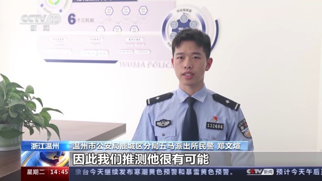 温州市公安局鹿城区分局五马派出所民警 郑文煊:在我们告知了林先生可能遭遇了电信网络诈骗之后,林先生还不是十分相信,他起身拨打了社区民警的电话号码,向社区民警再次确认自己是否真的被骗了。