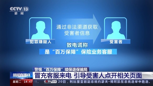 一类是冒充客服来电,犯罪嫌疑人通过非法渠道获取受害者信息并致电,谎称自己是“百万保障”保险业务客服,以受害人购买商品时点击了“百万保障”需要取消,或者已到期需要续保等为由,引导其点开“百万保障”页面。