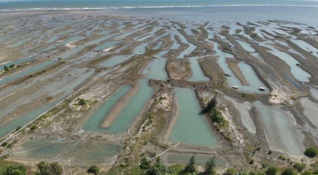 2023年11月22日,督察组现场督察使用无人机拍摄,清澜红树林省级自然保护区大量养殖塘取排水设施导致海滩被严重扰动侵蚀,沟壑密布,触目惊心