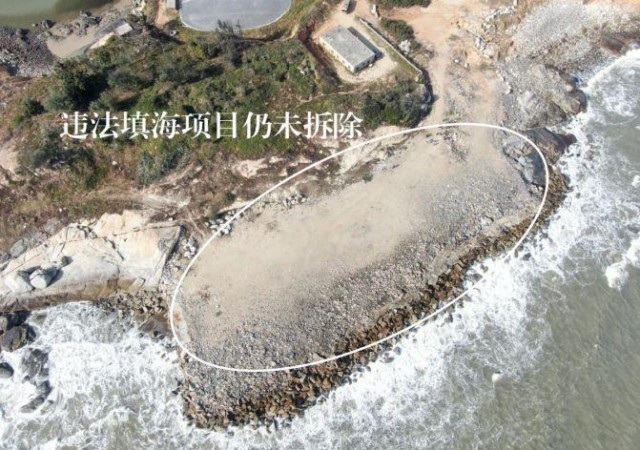 2023年11月25日,督察组现场督察使用无人机拍摄,发现漳浦县赤湖镇违法填海项目仍未拆除