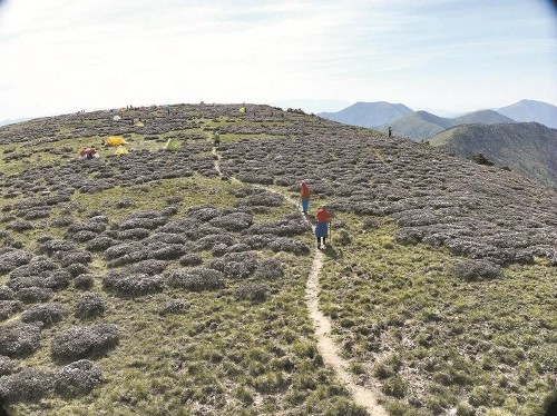 非法穿越者在秦岭东梁搭帐篷露营,高山草甸被踩出小径。董宏亮摄