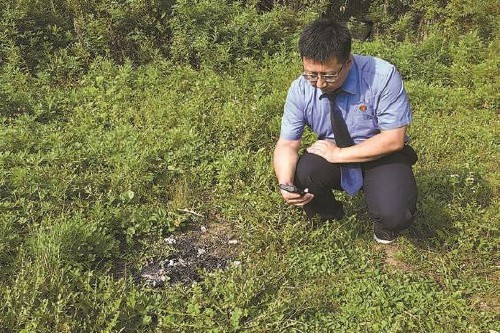 检察官在非法穿越线路上发现违法用火痕迹。 吴昱泉摄