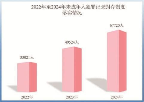 (5)依法适用未成年人法律援助、犯罪记录封存制度。2024年,认真落实未成年人刑事案件诉讼程序和特殊保护制度,全国检察机关通知法律援助机构为未成年犯罪嫌疑人提供法律援助51791人次,对符合条件的未成年人落实犯罪记录封存67720人。