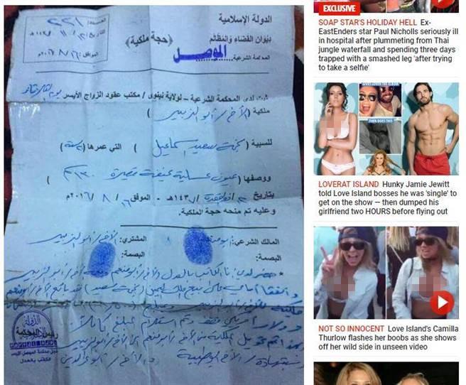 据英国《太阳报》报道,这张收据清楚地写明一名叫做祖贝尔(Abu Zubair)的女子被卖给了一名叫做莫罕(Abu Monem)的男子,上头除了有买卖双方的画押外,还清楚的标注了女方的条件以及价码,但官方指出,目前这张收据的真实性仍无法辨别,而这名被出售的女子也仍未被找到。