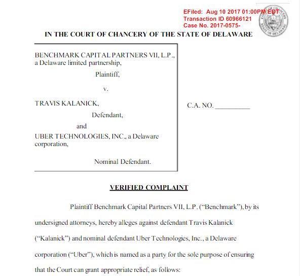 Uber投资方Benchmark Capital正在起诉Uber创始人、前首席执行官特拉维斯·卡兰尼克(Travis Kalanick),理由是涉嫌欺诈,要求他离开董事会,并撤销填补三个董事会席位的能力。