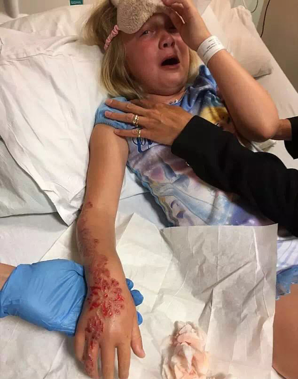 送医后,Madison的情况一度愈演愈烈,最后被送到了专治烧伤的权威医院。医生按化学烧伤治疗后,幸好病情得以控制,但手上那些像灼伤一样留下的疤痕可能会跟随她一辈子。