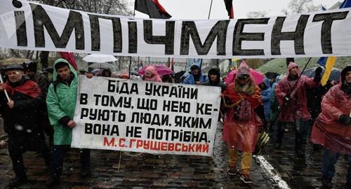 乌克兰反对派已经连续几个星期日在基辅市中心举行大规模游行。据估计,有2000-5000人参加了游行活动。示威者高喊口号,要求弹劾乌总统波罗申科,停止对反腐败机构施压和进行政治迫害。 有些人手举乌克兰国旗、红黑两色的民族主义旗帜、党派标志及许多不同的横幅和标语。大约有1000名警察负责维持秩序。