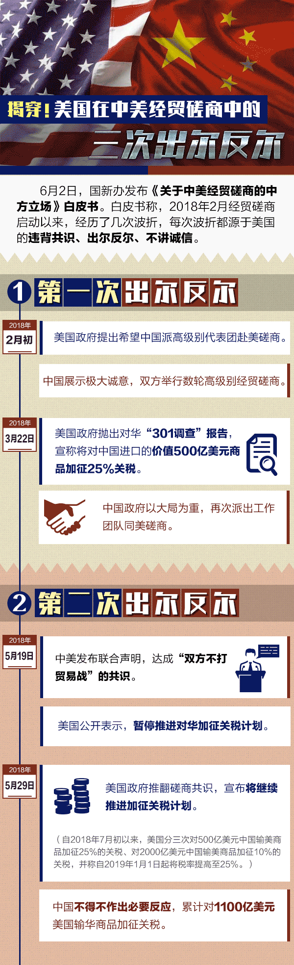 白皮书列举2018年2月中美经贸磋商启动以来美国三次出尔反尔详情。