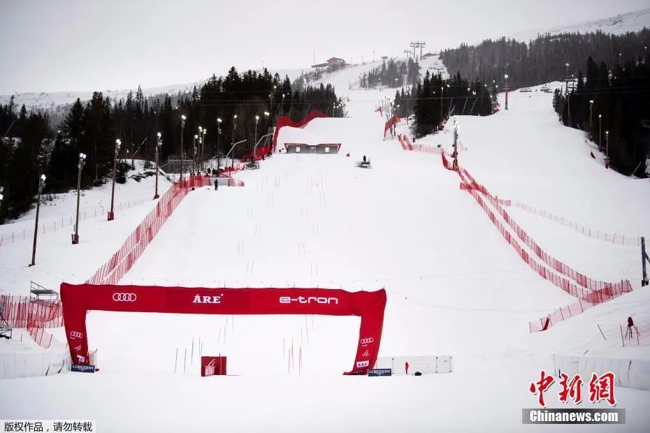 当地时间3月11日,瑞典奥勒滑雪胜地滑雪场空空荡荡。