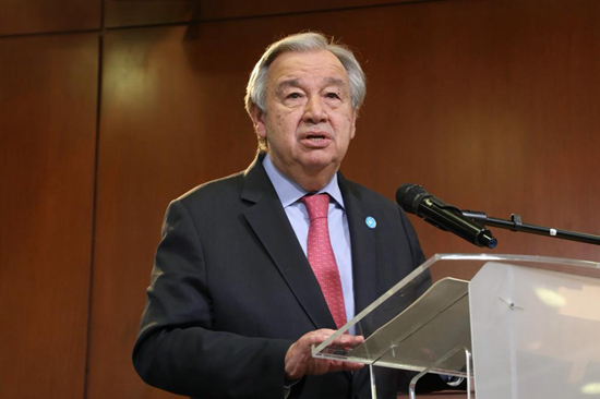 当地时间12月9日,联合国秘书长发言人杜加里克证实,联合国秘书长古特雷斯将出席北京冬奥会。图为古特雷斯11月24日在哥伦比亚首都波哥大发表讲话。人民视觉供图
