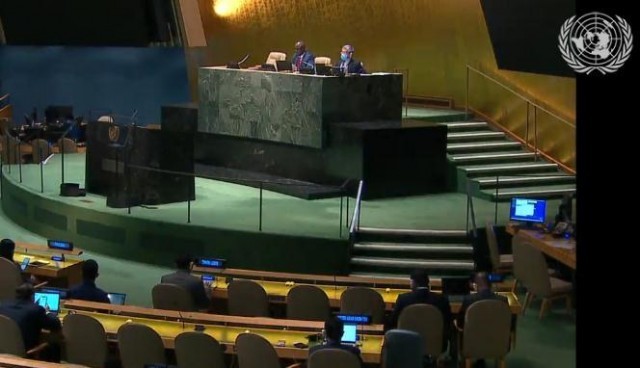 联合国大会4月26日通过涉安理会常任理事国否决权的新决议。图片来源:联合国网站视频截图。