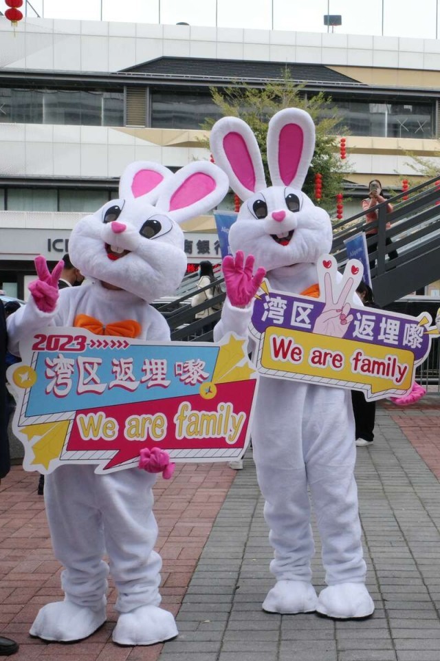 1月8日,深圳福田口岸的吉祥兔欢迎入境旅客。陈楚红/摄