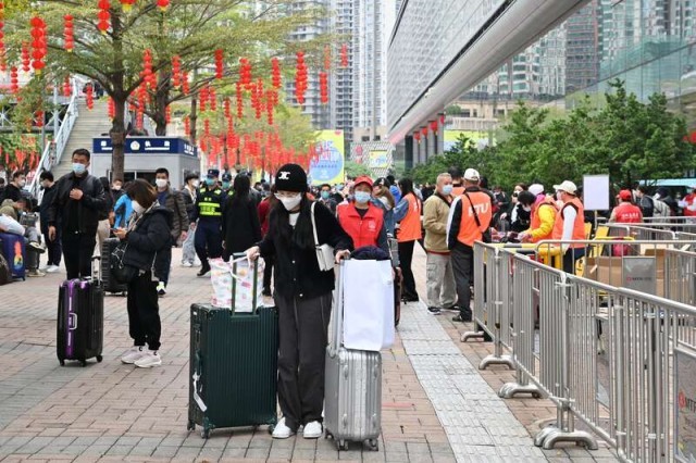 1月8日,深圳福田口岸的入境旅客。陈楚红/摄