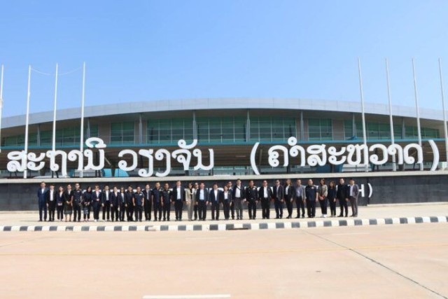 代表团一行人参观了老挝坎萨瓦站(Khamsavath),该站是老挝-泰国铁路7.5公里延伸段的一部分,连接泰国廊开和老挝塔拉楞站。
