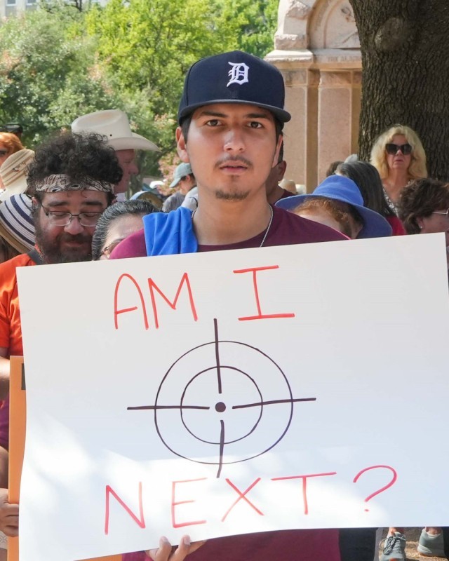 ↑2022年8月27日,人们在得克萨斯州奥斯汀参加集会呼吁控枪。