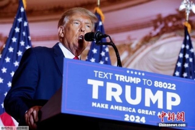 当地时间2022年11月15日,美国前总统特朗普在佛罗里达州海湖庄园发表演讲,正式宣布将参加2024年美国总统大选。