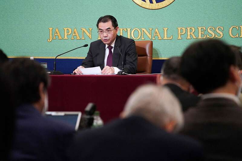 4月28日,东京,中国驻日本大使吴江浩在日本记者俱乐部发表演讲。中国驻日本大使馆供图