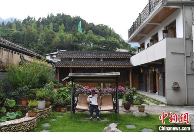 一名东北游客在民宿院中休息。近年来,浙江丽水依托生态优势,发展一系列“山”字品牌,将共同富裕的“蛋糕”越做越大。王刚 摄