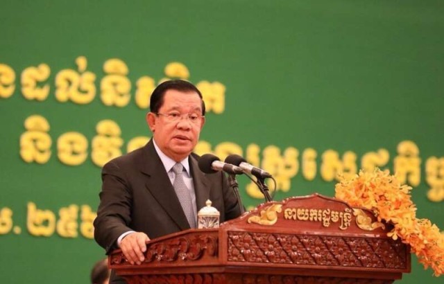 6曰5日,柬埔寨首相洪森在皇家法律与经济大学毕业典礼上发表讲话。《柬中时报》供图