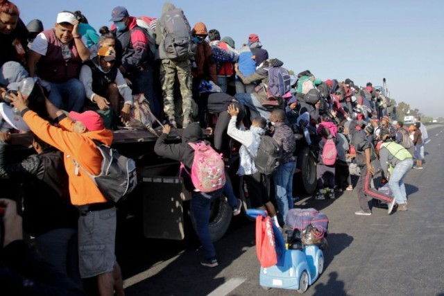2021年12月9日,在墨西哥普埃布拉,试图北上前往美国的移民准备登上一辆卡车。新华社发(卡洛斯·帕切科摄)