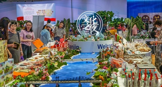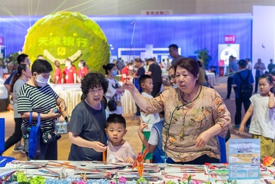 6月30日,天津,市民在举办“2023天津夏季达沃斯论坛文化之夜”的N5馆内参观购物。视觉中国供图