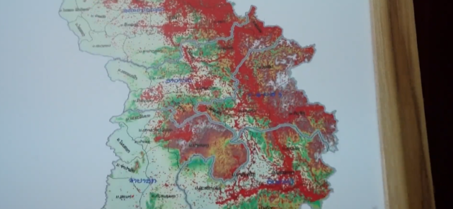 ▲老挝未爆炸弹的分布图上,红色的区域就是未爆炸弹遗留的位置