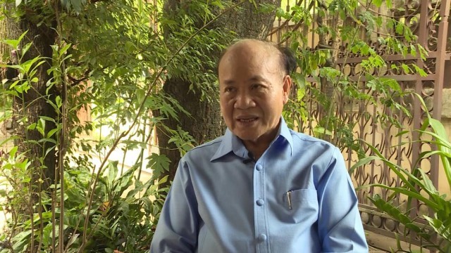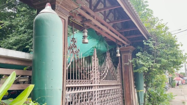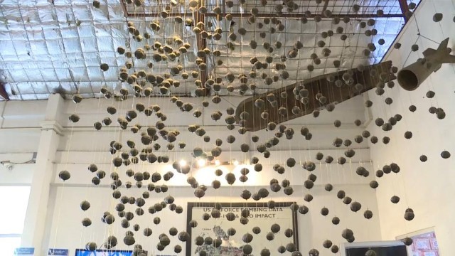 在老挝资深外交官西昆位于首都万象的家门口,两侧各竖立着一颗一人多高的集束炸弹弹壳;院子里,成排的花盆也放置在巨大的弹壳上。