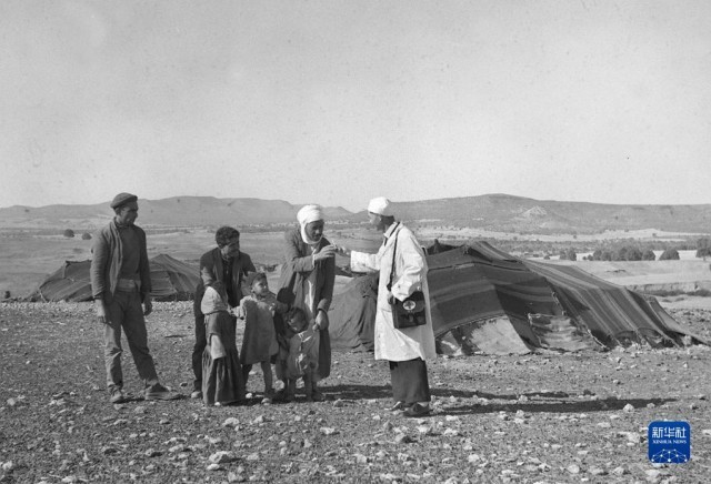 这是中国援阿医疗队医生薛进在阿尔及利亚的资料照片(1967年8月26日摄,2023年3月30日翻拍)。新华社发