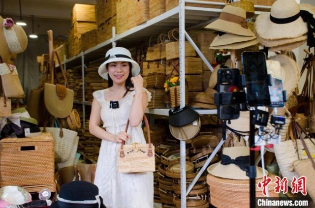 “这些藤编用品在越南编织好后,我们的企业去收货运回东兴,通过线上直播销往全国各地甚至欧美、日韩等海外市场。”从事两年直播带货的主播芳芳向中新社记者介绍,作为当地非物质文化遗产,越南手工藤编因做工细腻精美、材质环保等特点,深受海内外市场青睐。