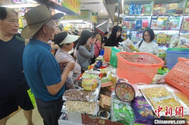 近日,东兴国门景区里的东南亚特产商铺受游客青睐。 中新社记者 翟李强 摄