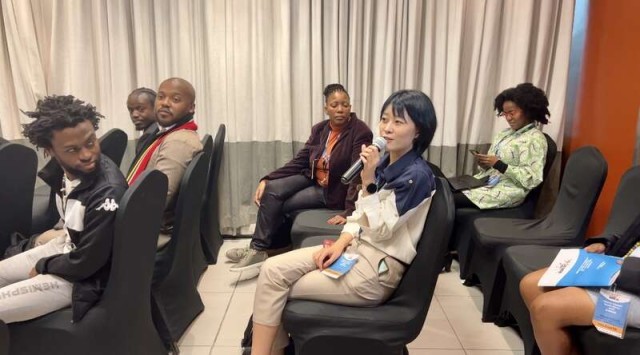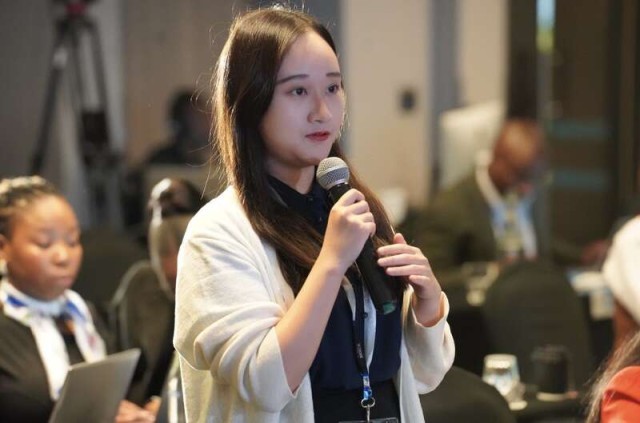 7月18日至20日,金砖国家青年峰会在南非德班举办。中国青年代表在“发展公正能源转型伙伴关系”议题委员会上回答外方提问。中青报·中青网见习记者赵安琪/摄