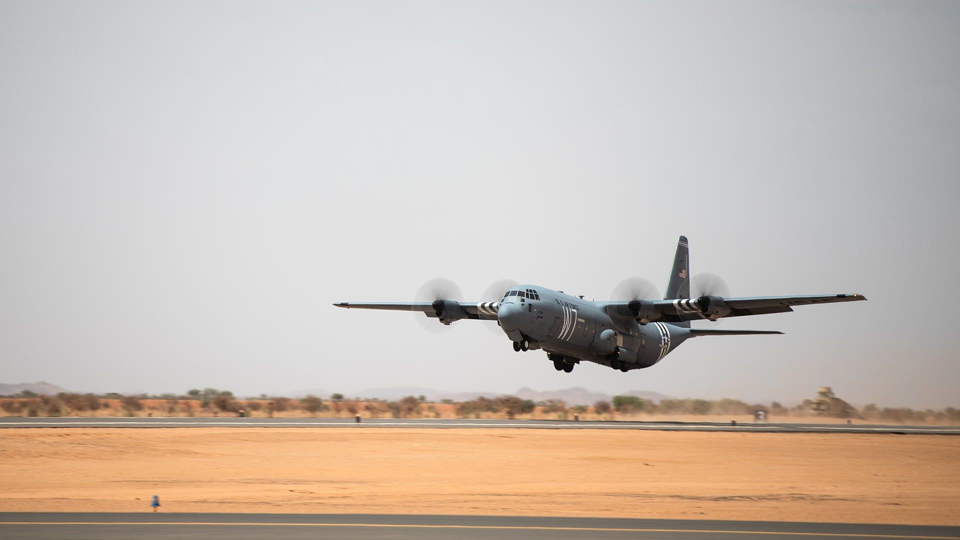 美军运输机从“尼日尔201基地”起飞。 图片来源 美国空军